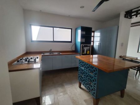 Cocina equipada, con estufa, horno empotrado, Isla, alacena extraíble y gaveteros