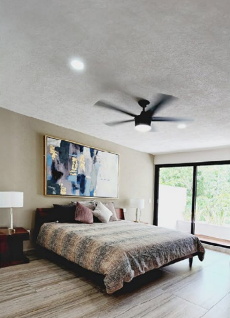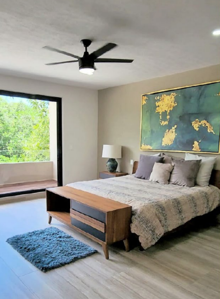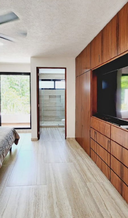 Recamara principal con espacioso walkin closet, baño completo con acabados en granito y balcón.