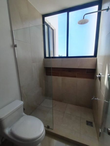-1 recamara con baño completo, áreas húmedas forradas, mampara de vidrio templado y closet vestidor