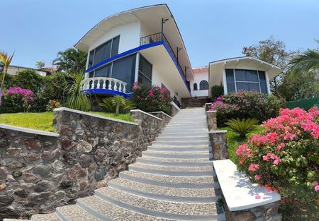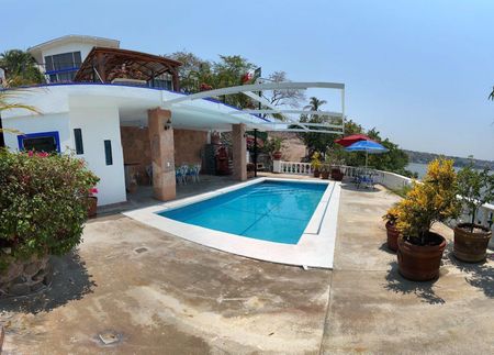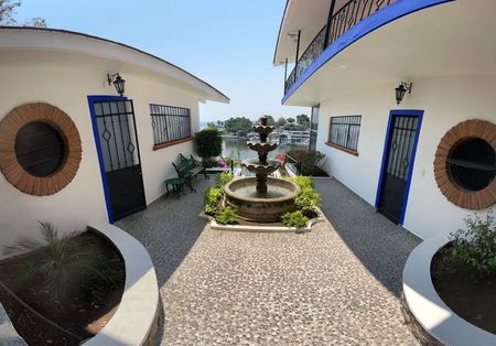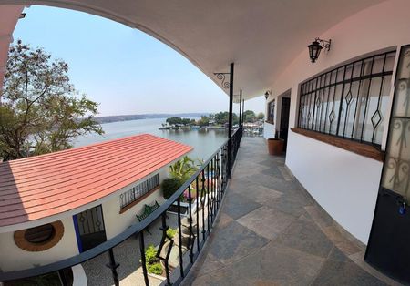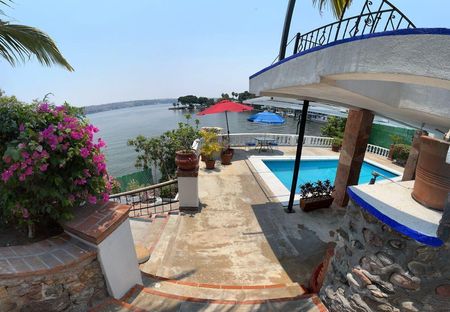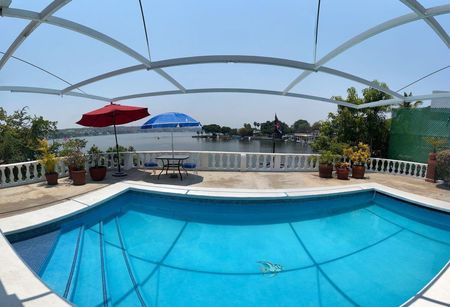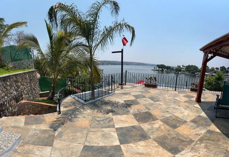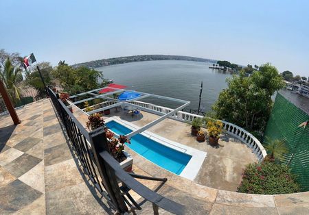 Hermosa quinta recién remodelada, amplios espacios y con magnifica vista al lago de Tequesquitengo, 3 terrazas con vista al lago, una con palapa y trampolín al lago, otra con alberca y palapa, otra más con palapa y asoleadero, recubiertos en piedra, lanchero, muelle, 4 recámaras con clóset y baño completo, sala, comedor, cocina equipada, jardín, fuente, casa de servicio, bodega, estacionamiento para 4 autos, agua potable, todos los servicios.
