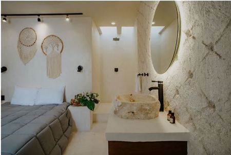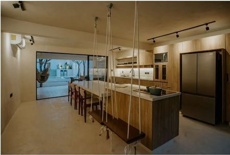 Casa Aknai esta diseñada con un estilo limpio y orgánico. Cada área cuenta con muebles para relajarse y disfrutar.