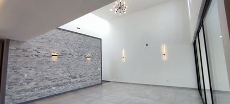 La casa tiene 401 metros cuadrados de construcción . Consta de tres recámaras, cada una con su baño , una en planta baja y dos en planta alta. La principal , en planta alta es muy grande. En la planta baja tiene una sala grande a doble altura, una cocina equipada con una gran isla, una terraza techada, un medio baño de visitas, y un cuarto de servicio con baño. Baños y cocina llevan topes de granito de brasil . Cancel de baños en cristal templado. Los acabados son a 5 capas ,en pasta fina. El jardín se entrega con pasto , y tiene una alberca de 3x9 , con predisposición para el sistema de filtrado y luz de led multicolore. La medida del terreno es de 406 metros cuadrados. Precio 6,200,000 . Pago con recursos propios.