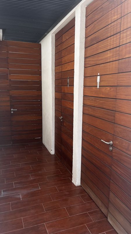 Alberca con baños de hombre y mujer independientes y calentador solar