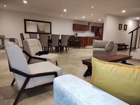 En Planta Baja: Sala, comedor, baño completo, cuarta recámara o estudio, cocina equipada y amplio jardín.