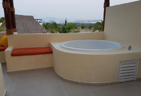 Tercer piso roof garden con sala de descanso, jacuzzie y cuarto de lavado con medio baño.