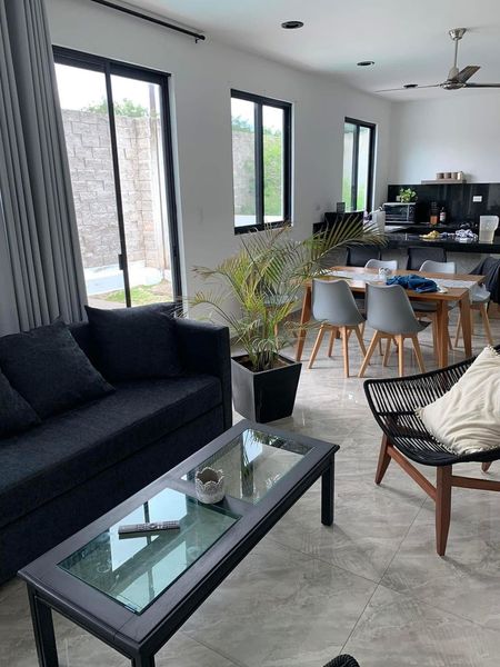 Casa en renta al norte de Mérida en privada , se encuentra a un costado de la carretera progreso, cercano a Tamanché, hacia destinos de la costa yucateca, áreas de belleza natural y los sitios sagrados de la cultura Maya. Las casas cuentan con un estricto control de acceso, calles de concreto hidráulico y de baja velocidad. Cercano a plazas comerciales, universidades y gran conexión con las playas .