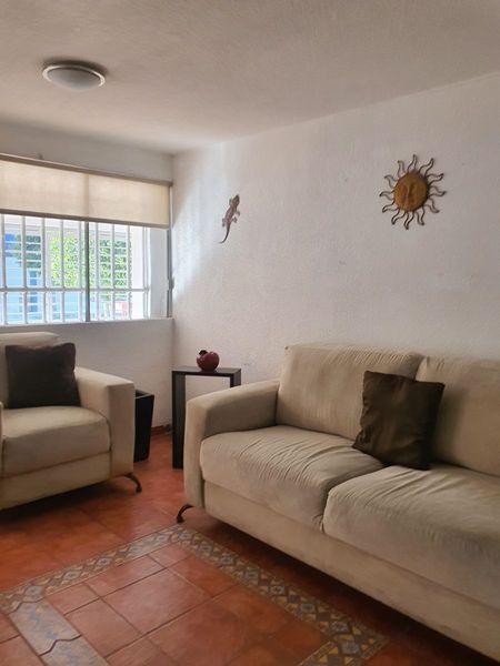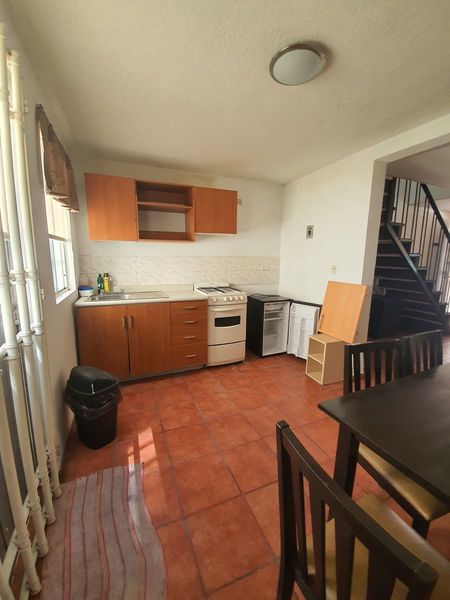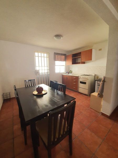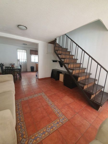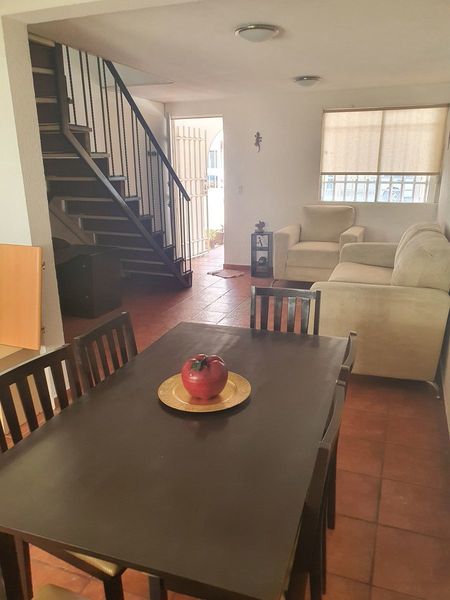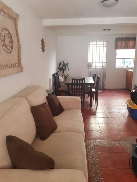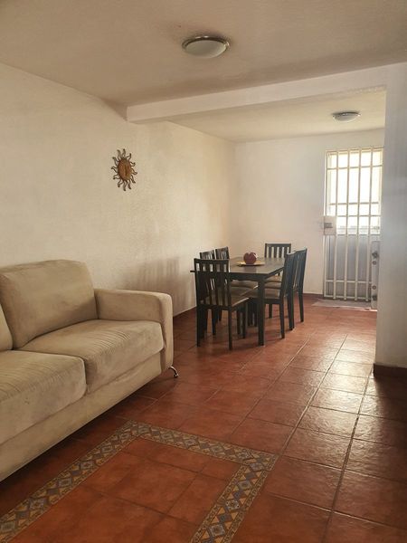 Sala,comedor,cocineta integral, 2 recamaras,1 baño, 1 estudio, patio de lavado, cochera para 1 auto techada, balcón, la casa cuenta con persianas y protecciones.