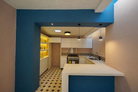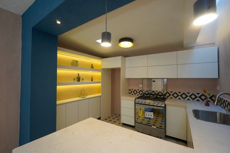 - Cocina abierta, vestida en carpintería