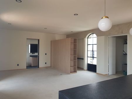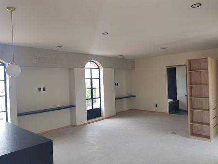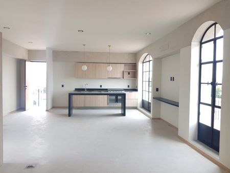 El loft tiene 1 recámara, baño con tina, cocina completa, terraza privada 20m2, vestidor y área de lavado