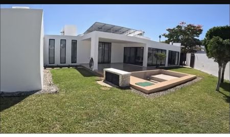 Son tres recamaras con vestidor y baño cada una, alacena y closets en material pvc, sistema de riego programable, contactos inteligentes, 37 lamparas para alumbrar el jardín, programable, 2 aires acondicionados inverter y 2 aires convencionales, 12 paneles solares con producción diaria 30 kw, presurizador, dos bodegas una interior y otra exterior todo en una sola planta, jardin con árboles frutales y espacios muy amplios. Cocina vestida, terraza techada, garage techado y alberca con filtros.