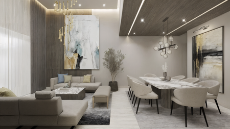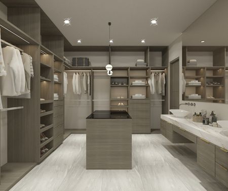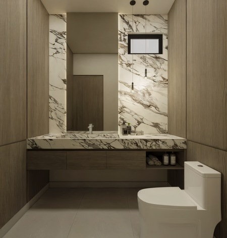 CARPINTERÍAS: Puertas de madera semisólidas, clósets con herrajes BLUM, muebles de baño con cubierta de mármol y espejos, mueble de TV en family room.