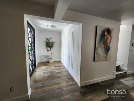 This beautiful property is conceptualized on two floors, with the following distribution: Ground floor consists of entrance hall, a large living room with a beautiful built-in furniture, dining room, kitchen with bar, half bathroom, backyard, outdoor multipurpose room, service corridor that connects to the garage with electric garage for two cars. Upstairs consists of a large master bedroom with walk-in closet and full bathroom. Two secondary bedrooms with closets which share a full bathroom. Additionally, there is the laundry room, which can easily be converted into a fourth bedroom, as there is enough space for an extension without affecting its original distribution.
