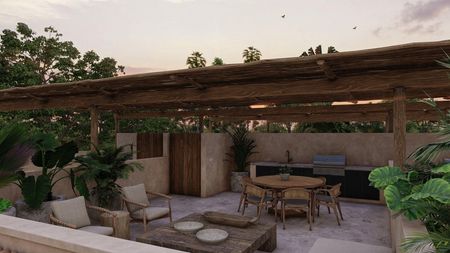 En el interior, la luz natural llena el diseño de concepto abierto, con una cocina equipada con electrodomésticos de primera calidad y un amplio espacio de sala y comedor. Los pisos de loseta duradera y los acabados de alta calidad ofrecen estilo y fácil mantenimiento. Salga a su rooftop privado con impresionantes vistas a la selva y destellos del mar, el escenario perfecto para disfrutar un café por la mañana, cócteles al atardecer o noches bajo las estrellas. Ya sea que busque una residencia permanente, un refugio vacacional o una propiedad de renta en alta demanda, este penthouse lo tiene todo.