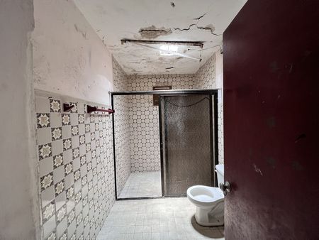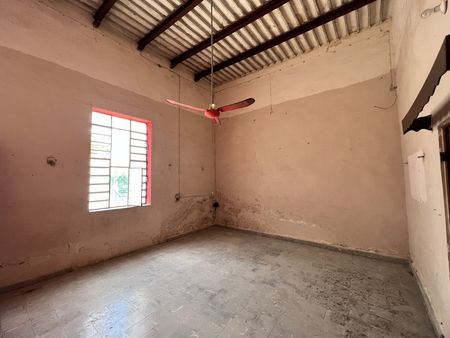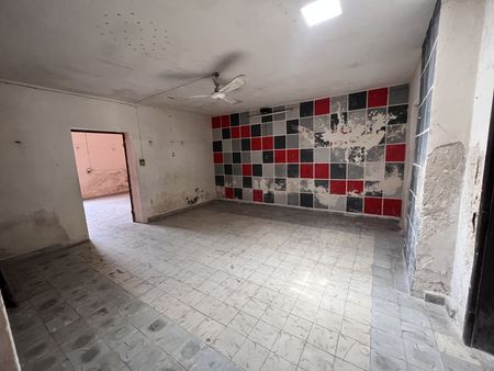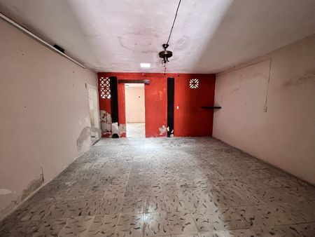 Al ingresar a la propiedad la primera crujía está dividida con una pared, que hace dos espacios, ya sea una sala y una recamara o estudio , bien se podría quitar la pared para que quede un amplio espacio, posteriormente hay otro espacio que podría ser el comedor y dos espacios más como recámaras, la cocina y un baño.