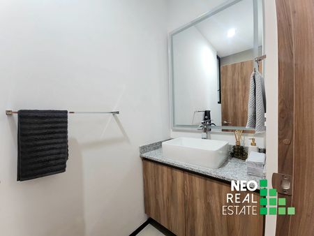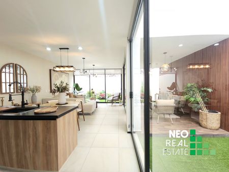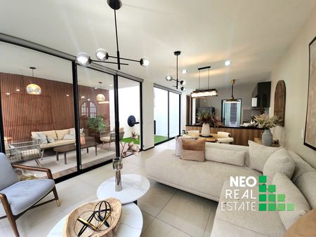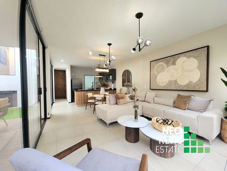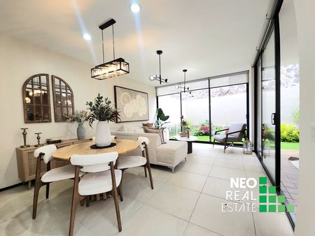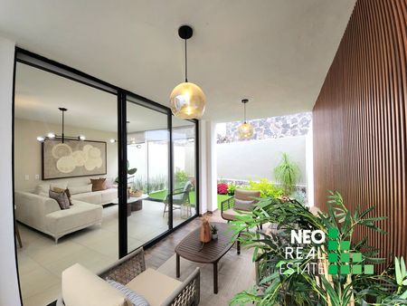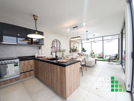 Residencia con arquitectura única, teniendo una entrada de luz generosa y acogedora. Con una escuadra en L que te permite llenar este espacio a tu gusto