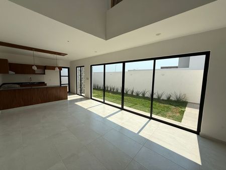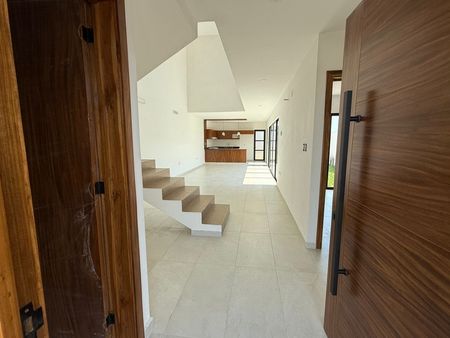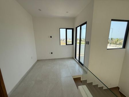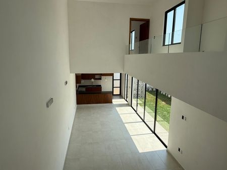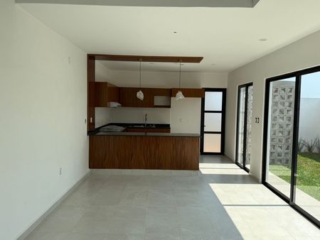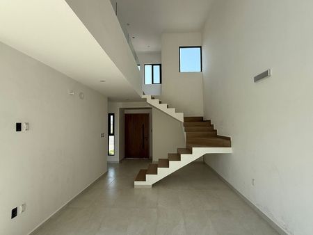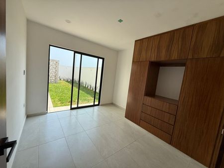 PB: Cochera 2 autos, sala comedor, cocina con barra desayunador, cuarto de lavado, medio baño, recámara con baño y clóset, amplio jardín.