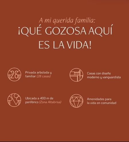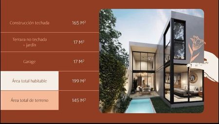 Planta Baja: - Estacionamiento para 2 autos - Pasillo de acceso con una puerta amplia - Jardinera y un arbol fuera de la casa - pasillo de servicio que nos lleva al area de calentador y area de tendido. - Cocina abierta que se presta a la conviviecia con una barra - Sala con doble altura, ventana de casi 6 mtrs - comedor - Tiene una alacena cerrada -terraza doble altura - Alberca