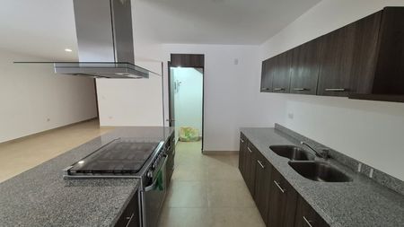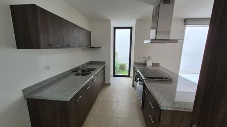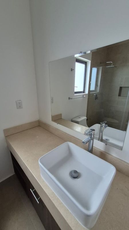 Casa de 2 niveles con diseño contemporáneo y espacios bien distribuidos. Cuenta con estudio, ideal para home office. La planta baja ofrece sala-comedor integrados, cocina integral equipada y área de lavado techada, además de una recámara adicional con baño completo. En la planta alta se encuentran las 2 recámaras restantes, la principal con baño propio, y un baño completo adicional.