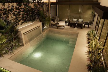 Alberca con cascada e hidro jets con luces led de colores