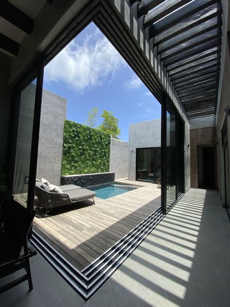 Residencia de 1 nivel con 3 recámaras, 2.5 baños y alberca privada con acceso a áreas comunes exclusivas para residentes de Buluc.