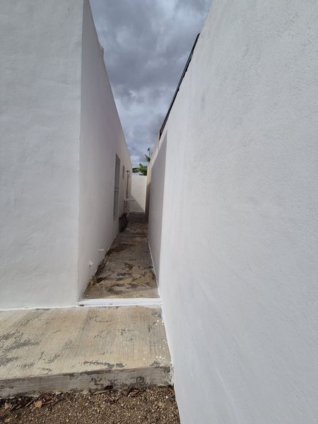 Patio con pasillo de servicio.