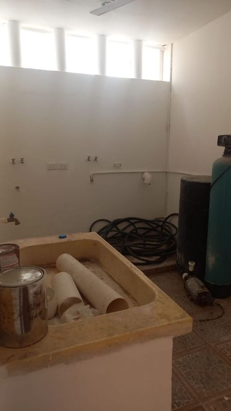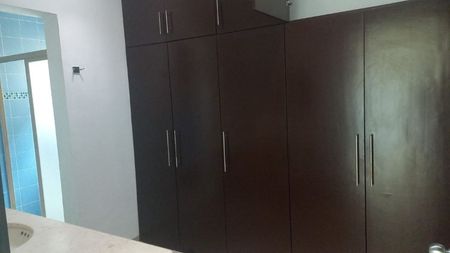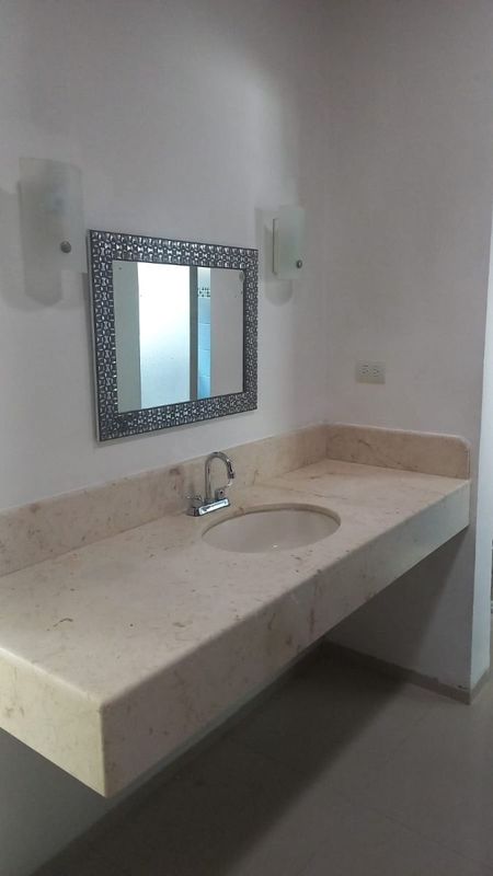 Oficina, wc visitas, sala comedor, cocina con gabinetes y closet y área de lavado con cuarto de servicio y baño, pasillo lateral.