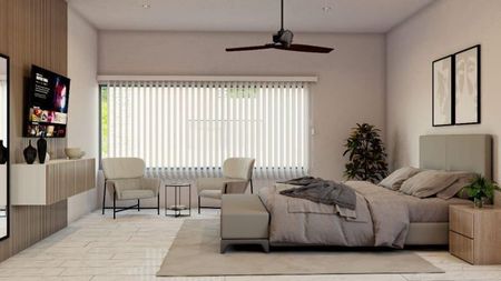• 3 Recámaras con baño y clóset vestidor, la principal con vestidor premium amplio y en el área de ducha del baño forrada en mármol con doble lavabo sobrepuesto en meseta de mármol