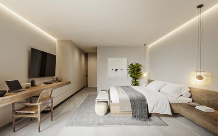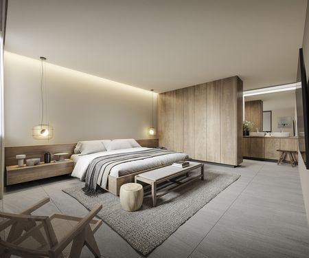 Dos recámaras secundarias con baño completo privado y clósets, recámara principal con vestidor y baño completo y área de lavado.