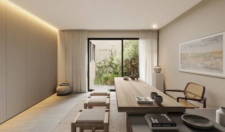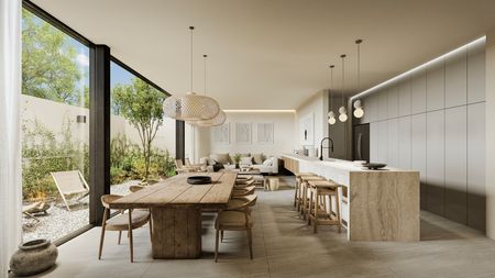 Cuenta con medio baño para visitas, sala - comedor, cocina equipada, conexion con jardín, estudio con baño completo en planta baja.