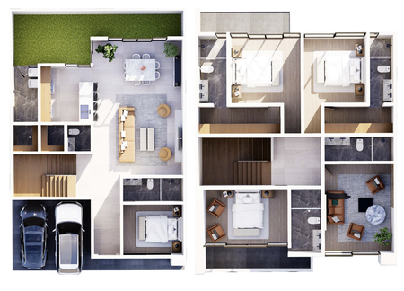 Tiene 387 m2 consta de 2 niveles con jardín de 33m2 y balcón.