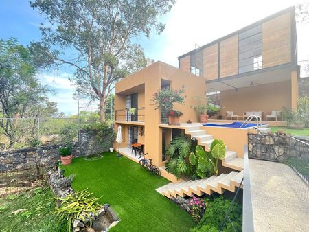 Excelente casa diseñada en tres niveles, ideal para habitarla de tiempo completo, descanso o utilizarla para negocio tipo Airbnb o alquiler temporal, el inmueble puede habitarse como unifamiliar o por el diseño arquitectónico en dos secciones se puede cohabitar la casa, y utilizarla como dos departamentos independientes, al contar con un inmueble de acceso autónomo (Nivel inferior y otro en nivel superior). Con área común de jardín, alberca climatizada.