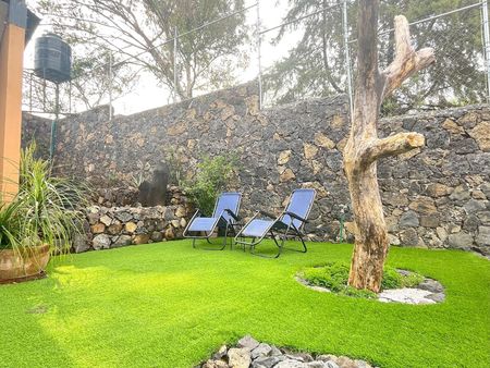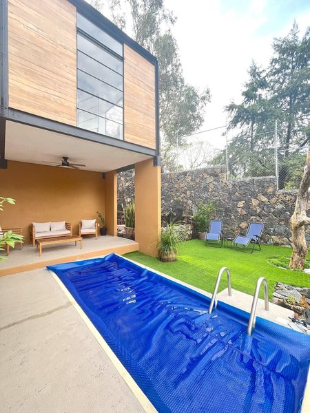 Ventaja adicional: la cercanía a la CDMX, a 72 km desde caseta Tlalpan, ( 1.15 hrs. promedio en auto). Ubicado en zona tranquila, inmueble con muy buen nivel de iluminación, vista área verde, diseño con proyecto arquitectónico sustentable, eco friendly y funcional, casa completamente independiente, bardeada, cisterna propia con capacidad de 60,000 lts