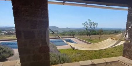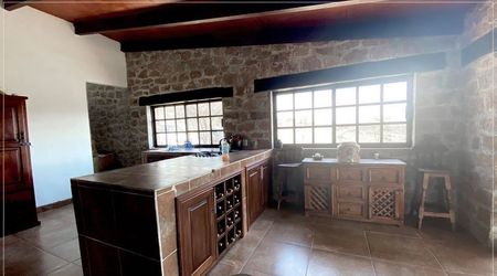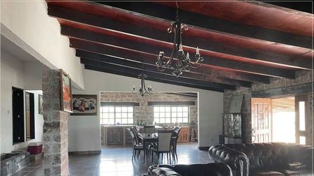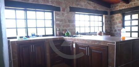 Cuenta con excelente vista panorámica, tiene una cabaña, estilo rustico, techo de teja, así como también espacio de sala con chimenea, comedor, cocina integral, un moro llorón que marca la separación de la cocina y la sala, tiene un cuarto de lectura. Y cuenta con 3 amplias recamaras, 2 baños completos y el principal con tina de hidromasaje para esos fines de semana sensacionales de relajación.