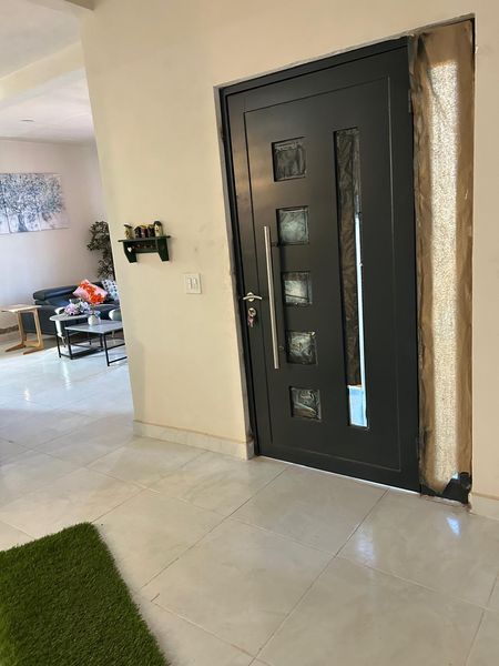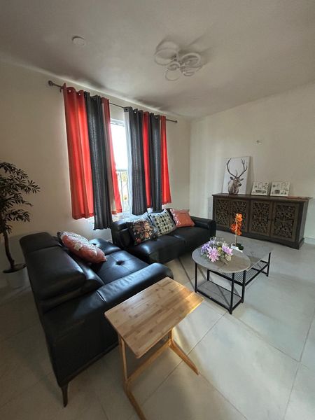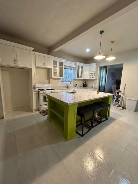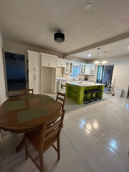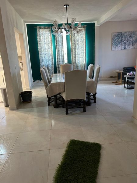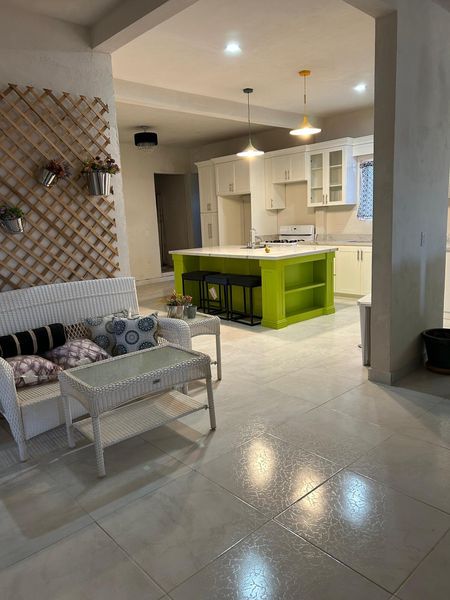 Planta única: Sala, cocina, comedor, tres recamaras y dos baños completos de uso común y un estacionamiento techado.
