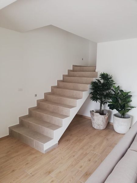PB: estancia amplia, techo de doble altura, medio baño de visitas, jardín, cocina equipada y área de lavado.