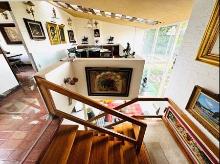 -BIENVENIDA- Esta propiedad es todo un placer recorrerla, cuenta con explanada de estacionamiento para acomodar tus autos. La casa es muy agradable y cómoda. Desciendes un poco para llegar a la entrada principal. Casa moderna, sin embargo, señorial, discreta, su diseño fue realizado para aprovechar vistas preciosas del valle de arboledas que se encuentra a lo lejos a sus pies,