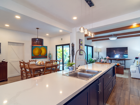 Los acabados, así como la cuidadosa combinación de tonos y materiales tanto en la cocina como en los baños, reflejan la elegancia y el buen gusto que distinguen cada rincón de esta residencia.
