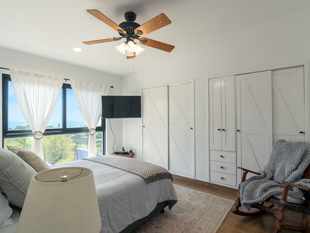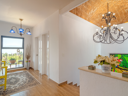 Located on a quiet cul-de-sac within the exclusive Rancho del Oro community in Ajijic West, this beautifully remodeled property has been designed to make the most of every space. The main floor offers an open and inviting layout, illuminated by a charming interior patio that fills the home with natural light and connects seamlessly with the terrace and balcony overlooking the lake.