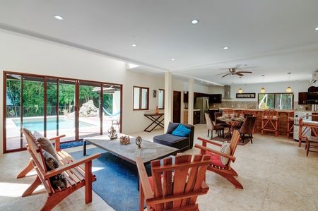 Sala de estar abierta; Se abre a la alberca privada con cascada, bar y lavabo exterior y regadera.