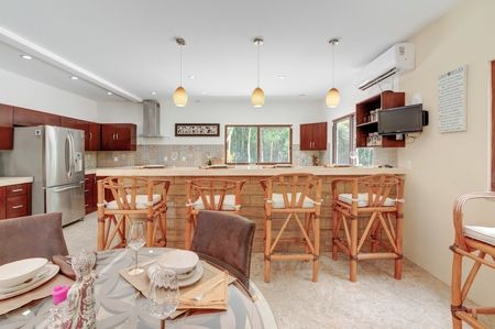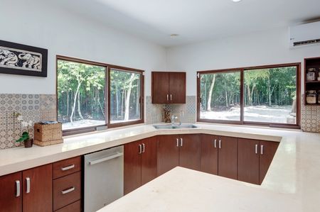 Los Árboles, Tulum es un escondite en la selva maya: una comunidad residencial segura y cerrada, ubicada a tan solo minutos de las magníficas playas de Tulum. Allí encontrará la 'Casa de los Sueños', una increíble casa personalizada de 5 habitaciones y 5 baños con piscina privada y cascada. Esta hermosa casa en venta se encuentra dentro de una reserva ecológica de 486 hectáreas en un terreno privado de 1.8 hectáreas. Este oasis ambientalmente responsable ha sido diseñado para proteger y preservar la selva. Con caminos permeables, energía alternativa, uso de materiales locales y cosechados naturalmente, áreas verdes y fácil acceso a las hermosas y cuidadosamente diseñadas comodidades comunitarias, este desarrollo es la casa de ensueño para quienes tienen conciencia ecológica.
