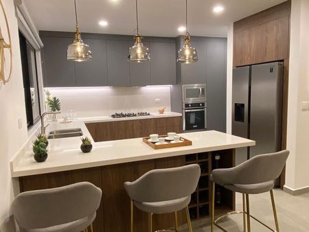 Amplia sala comedor, cocina súper equipada con cubierta de cuarzo .