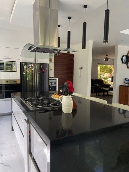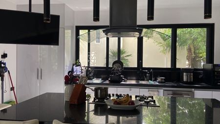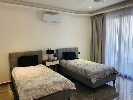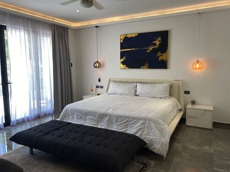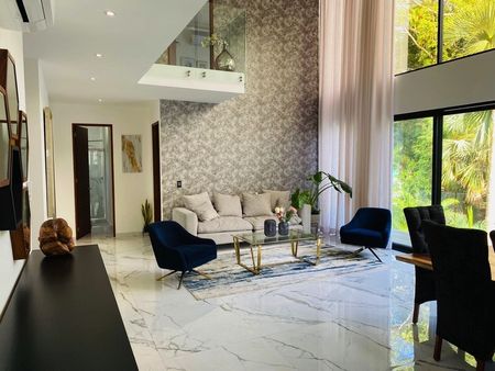 Esta increíble villa de 3 recámaras y 2 baños es amplia y lujosa, con techos de doble altura y grandes ventanales que dejan entrar una gran cantidad de luz caribeña. La planta principal cuenta con un diseño de planta abierta, con una cocina completamente equipada con isla y electrodomésticos premium, una sala de estar y comedor, una sala de TV, un cuarto de lavado y una terraza. Tiene un área de recepción tipo hotel con estacionamiento techado y acceso a la cocina. Las recámaras cuentan con clósets, baños en suite y balcones. La recámara principal tiene un enorme vestidor y una terraza de 25 m². Además, hay dos apartamentos independientes en el sótano, perfectos para huéspedes, familiares o para rentar. Esta villa brilla con pisos de mármol y acabados de alta gama. Se ofrece en venta completamente amueblada y equipada con ventiladores de techo, aire acondicionado y ventanas contra tormentas.