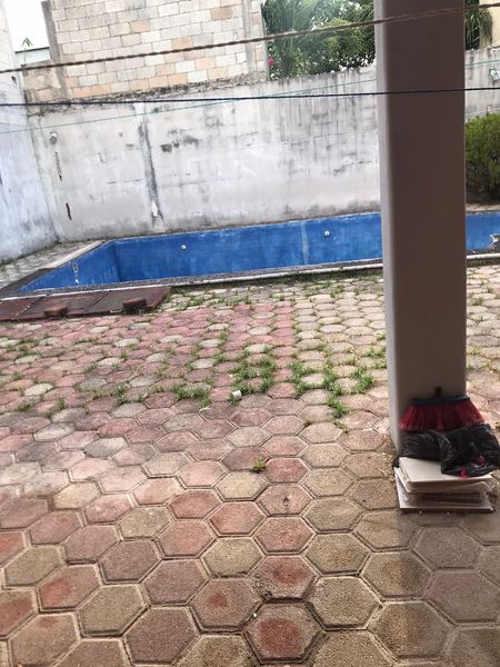 Planta baja: amplia área de sala-comedor, medio baño, cocina, estudio (podría ser un cuarto pequeño). Terraza trasera muy amplia con alberca grande. Espacio para dos vehículos.
