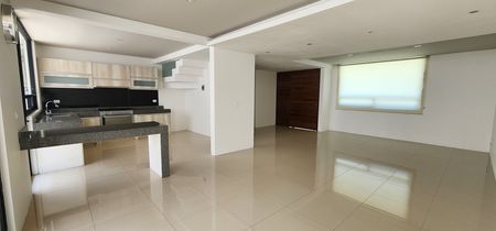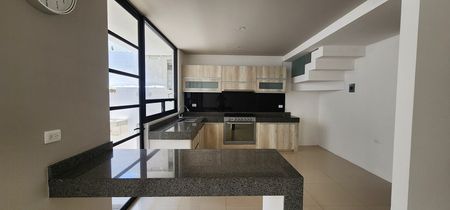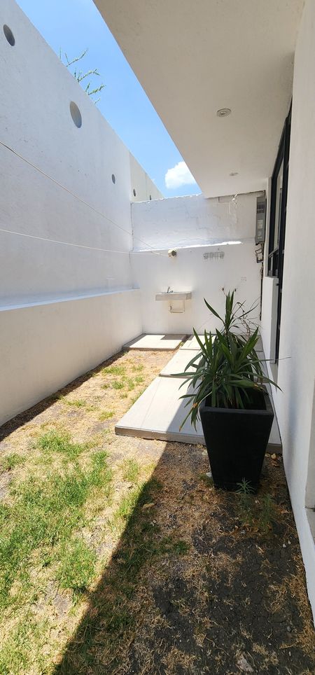 Planta baja: Amplia sala-comedor, cocina equipada, medio baño para visitas, jardín privado, área de lavado y estacionamiento para 2 autos.