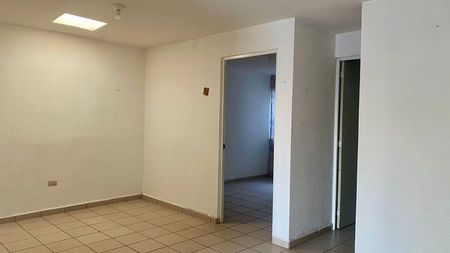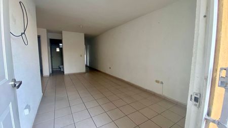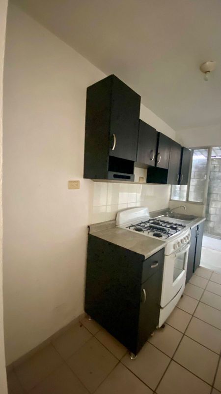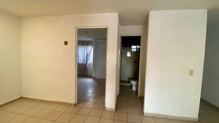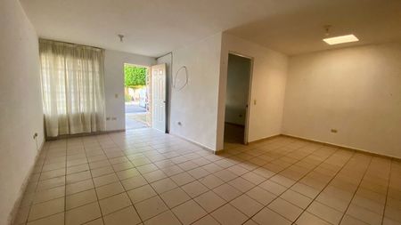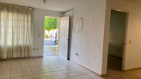 Consta de 2 recamaras con closet, un baño completo, estudio (o espacio para futuras escaleras al segundo piso), sala, comedor, cocina, patio de servicio trasero, jardín al frente y espacio hasta para dos coches.
