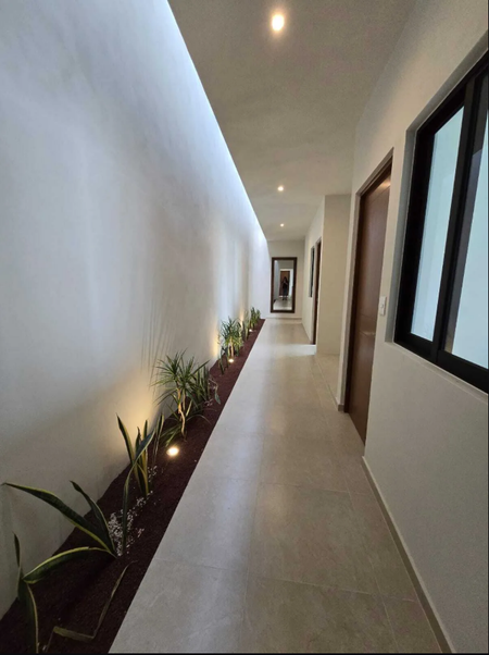 • Pasillo distribuidor con área para jardinera e iluminación de tragaluces.
