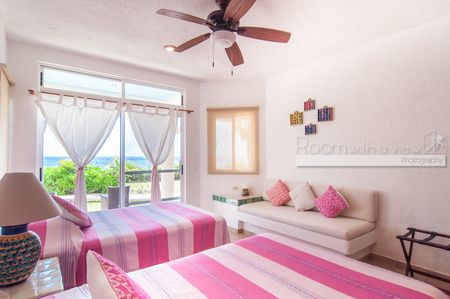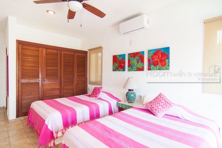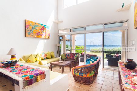 Esta elegante residencia de 5 habitaciones y 4.5 baños ofrece más de 520 m² de espacio habitable, decorado con detalles mexicanos, azulejos de Talavera y coloridas obras de arte. La planta baja cuenta con una amplia y luminosa sala de estar con techos de doble altura y vistas panorámicas al mar. A usted y a sus huéspedes les encantará la terraza en el rooftop con vista al océano, área de descanso integrada y paneles solares para una mayor eficiencia energética.
