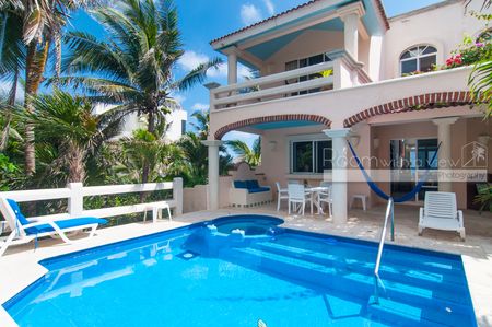 Escápese a la belleza y tranquilidad de Akumal Norte en Casa Dos Palmas, una impresionante villa de dos pisos frente al mar, ubicada a tan solo unos pasos del Caribe y a minutos de las playas de Akumal y la Bahía de la Media Luna donde puede dar paseos por las playas de arena blanca o practicar esnorkel y admirar la vida marina, incluyendo tortugas. Casa Dos Palmas se ubica a una corta distancia caminando de los restaurates y boutiques locales, así cómo el Spa, tienda de buceo y la laguna de Yal-Ku.