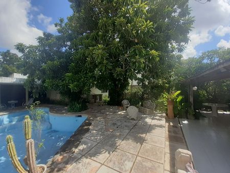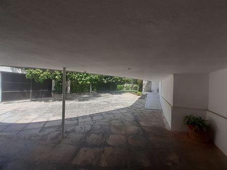 Residencia rodeada de hermosos jardines y árboles frutales, muy amplio estacionamiento.