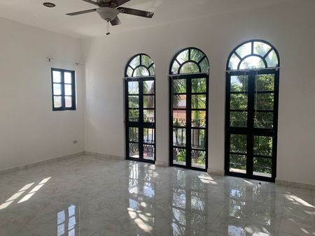 La residencia tiene tres pisos, sótano cuarto de servicio con baño, 4 habitaciones, amplios closets, salón de juegos y techos con de altura de tres metros.